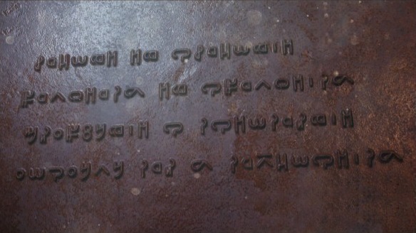 En la primera línea, hay dos palabras similares tanto en la traducción como en la inscripción Isu. Como se puede ver abajo marcado en rojo, las palabras «true» se repiten en ambas versiones, con pequeñas diferencias, algo que confirma el significado de esas palabras.