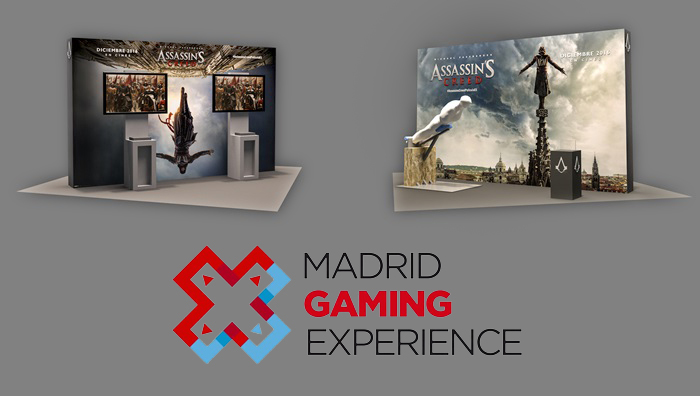 Los días 28, 29, 30, 31 de octubre y 1 de noviembre la película Assassin’s Creed estará presente en la primera edición de la Madrid Gaming Experience. Se situará en un stand donde los asistentes podrán hacerse una foto emulando un Salto de Fe.