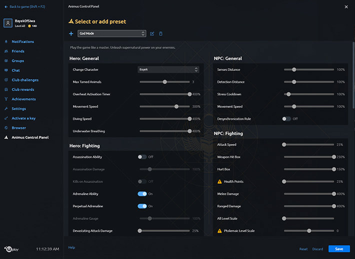El panel de control del Animus es una herramienta para PC que permite modificar los parámetros del personaje, el sistema de combate y otros elementos del juego para crear una experiencia personalizada y única que puede hacer el juego más extraño o difícil que la experiencia tradicional. La herramienta del Panel de Control del Animus está integrada en la biblioteca de Uplay. Permite modificar 75 parámetros dentro de 11 categoría, junto a 3 configuraciones predeterminadas disponibles. Los jugadores pueden compartir sus configuraciones en un foro específico.