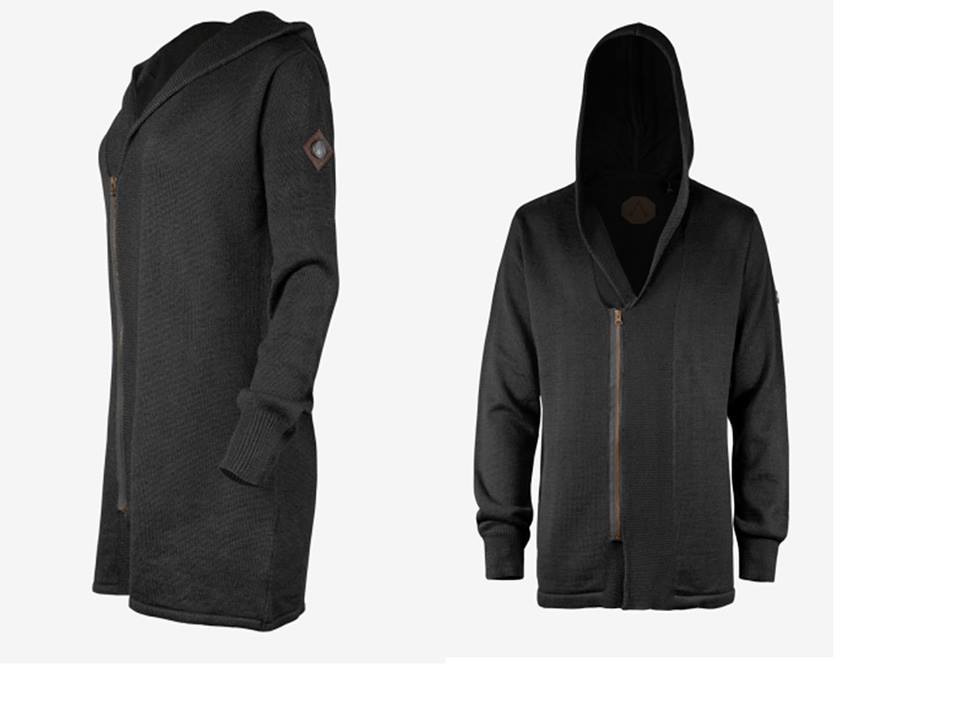 Como complementos a estas dos prendas se nos presenta una estupenda capucha negra de lana y acrílico con bufanda de estilo Assassin, que resalta en la parte trasera con un parche de cuero y de nuevo un botón metálico con el logo de la saga. El coste será de 59€. Desde el 16/11/2015 estará disponible la reserva.