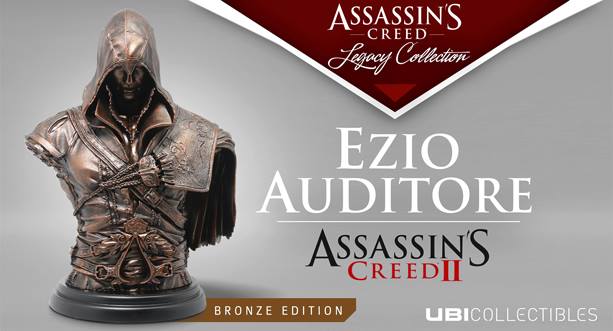 Una edición limitada de un busto de Ezio Auditore, con un tono de bronce que lo hace más atractivo. Una joya de las más valoradas entre los coleccionistas de la saga de Assassin’s Creed, cuyo lanzamiento está previsto para septiembre de 2015, a un precio de 44,95 €.
