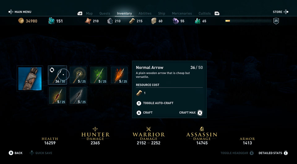 Para facilitar la experiencia de los jugadores, se ha añadido una nueva característica al juego para crear flechas normales automáticamente cuando el jugador agota todas sus flechas y se dispone de suficientes recursos. También se han incluido nuevos menús con las estadísticas detalladas del personaje, accesible desde el inventario, y se ha mejorado el menú de Mercenario para mostrar correctamente los rangos desbloqueados y las recompensas asociadas.