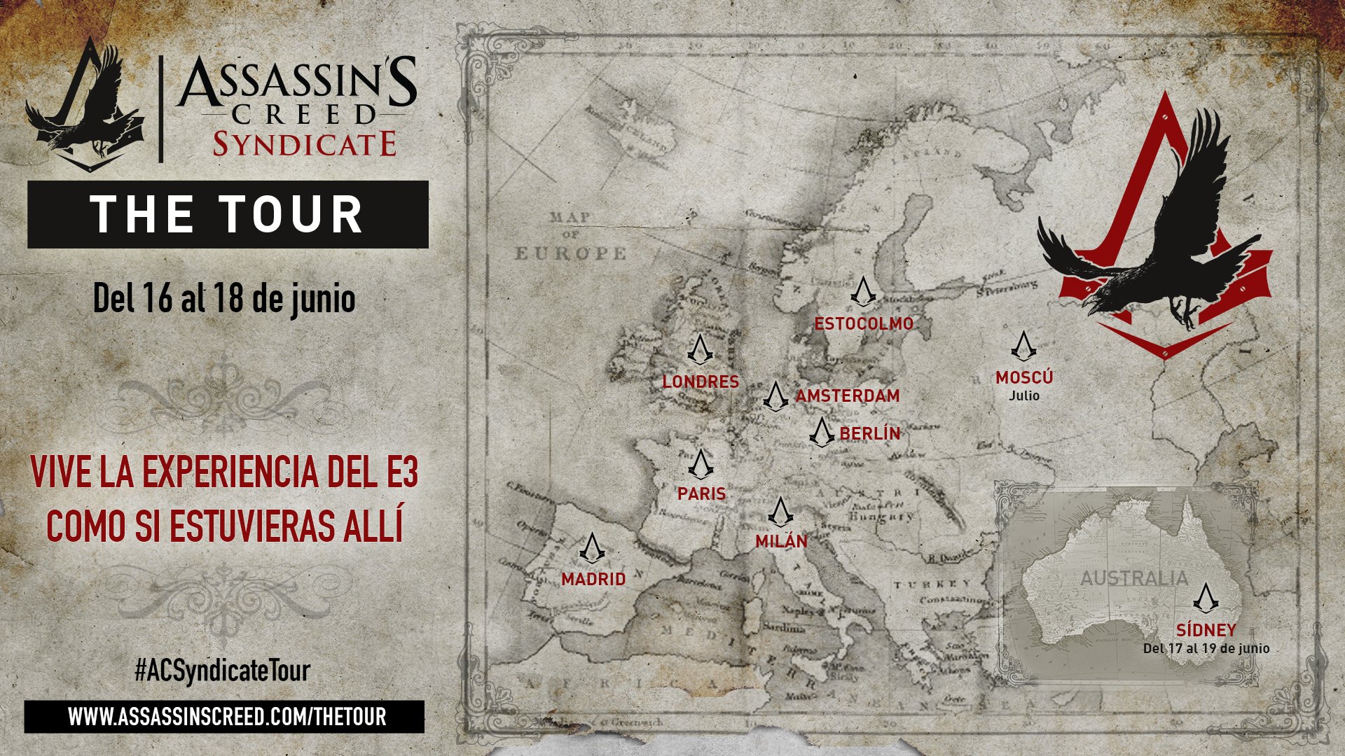 Assassin’s Creed Syndicate: The Tour os permitirá experimentar el juego como si estuvierais en el E3 de Los Ángeles, pudiendo probar las mismas demos que estarán en la feria. También podréis revivir el Londres del siglo XIX, a través de una experiencia única y exclusiva para fans VIP.