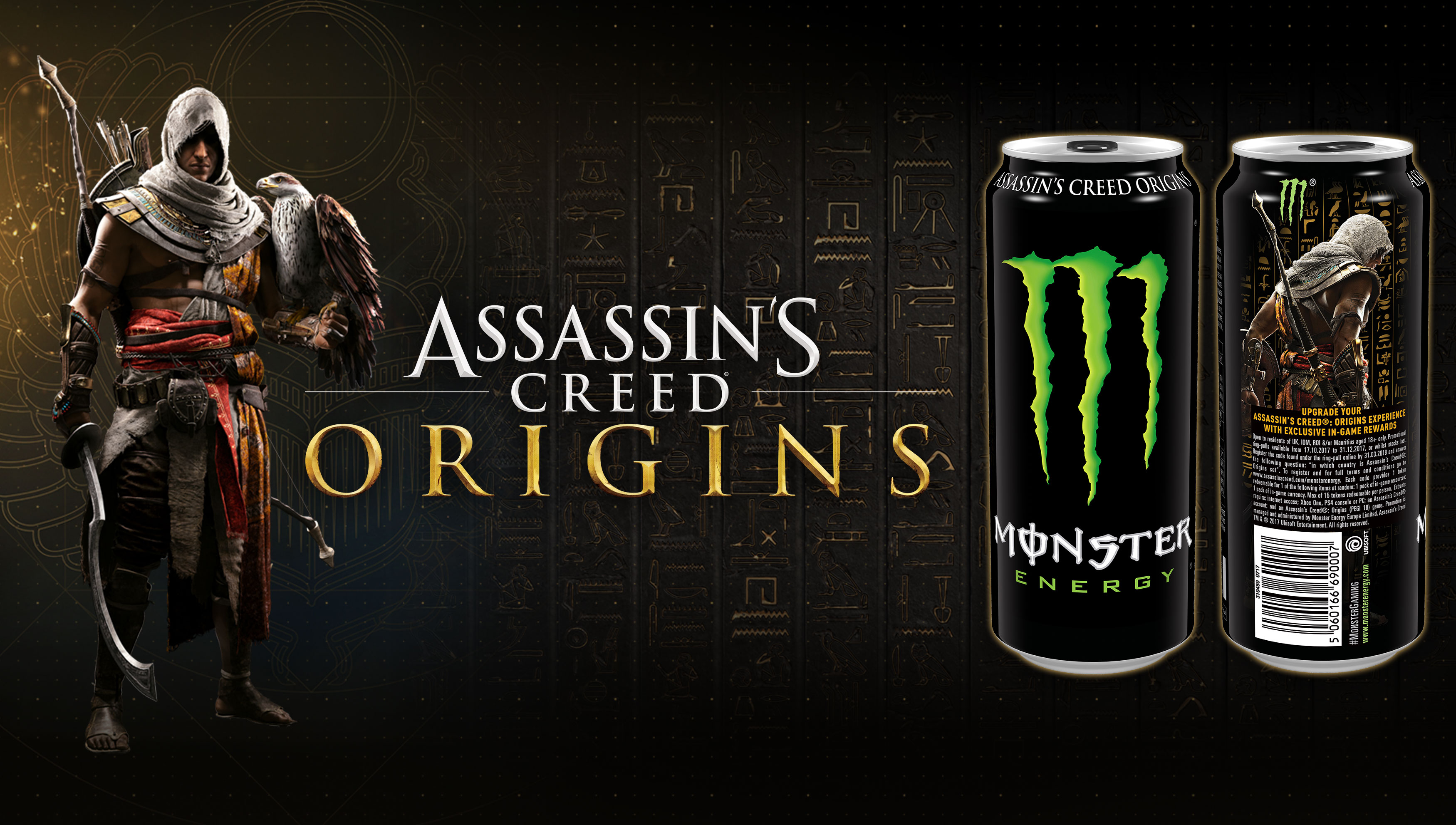 Códigos en las latas Monster Ubisoft ha anunciado oficialmente, días después de su filtración, un acuerdo comercial entre la marca del próximo lanzamiento de la saga, Assassin’s Creed Origins, y la bebida energética Monster Energy.